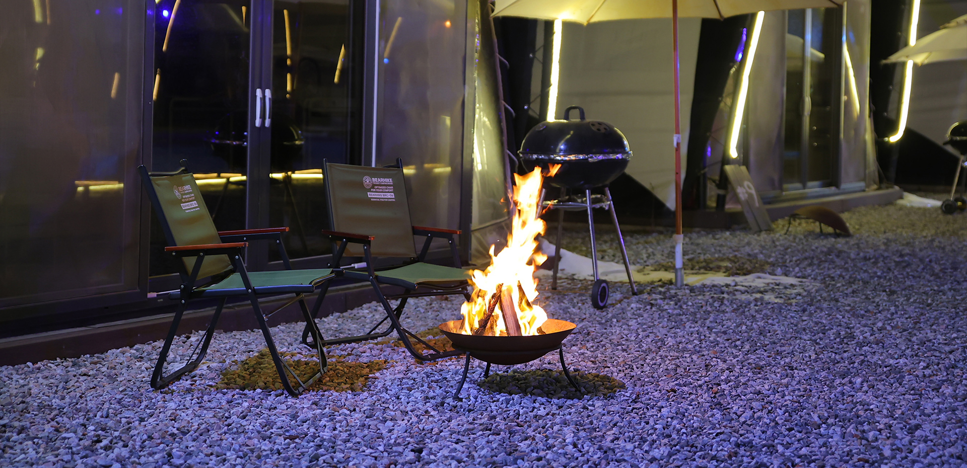 글램핑에 따뜻하고 특별한 추억이 맺히도록 불멍을 준비했습니다.